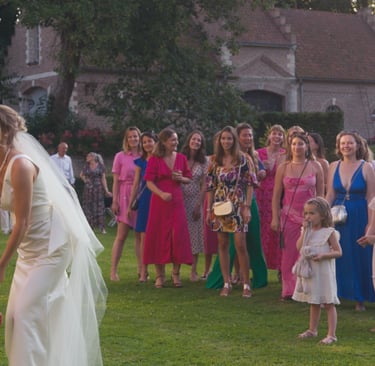 Le lancer de bouquet est un instant très attendu par les invitées non mariées, et il apporte toujours une touche de dynamisme à la vidéo. Ce moment rempli d'excitation, de suspense et de joie collective est parfait pour capter des réactions spontanées. Les cris d'encouragement, les fous rires et la victoire de celle qui attrape le bouquet ajoutent un vrai plus à votre film de mariage.